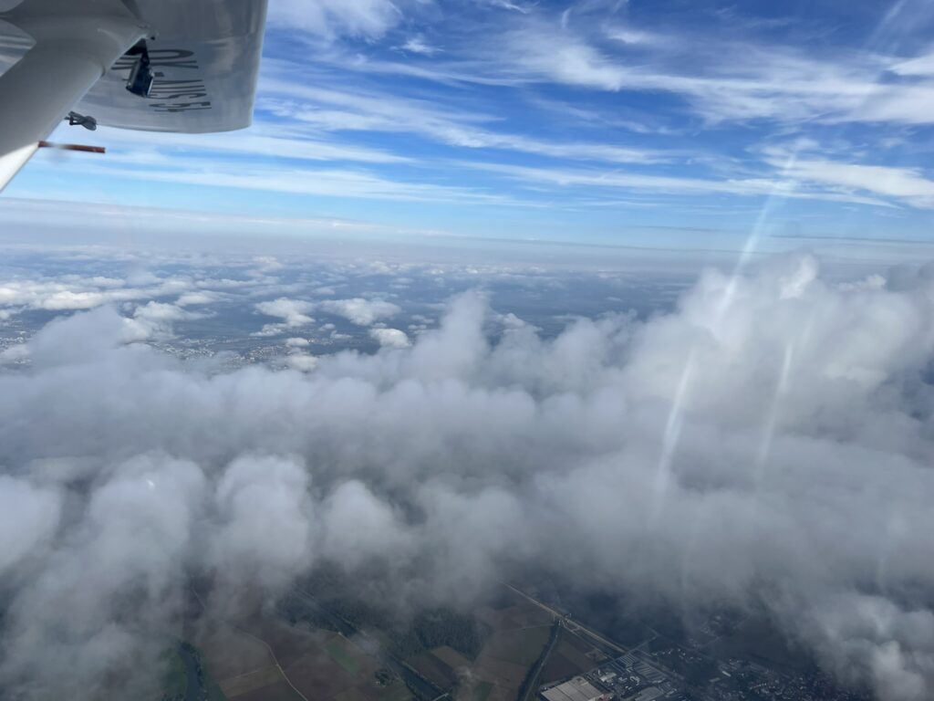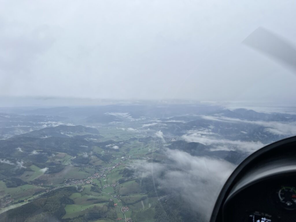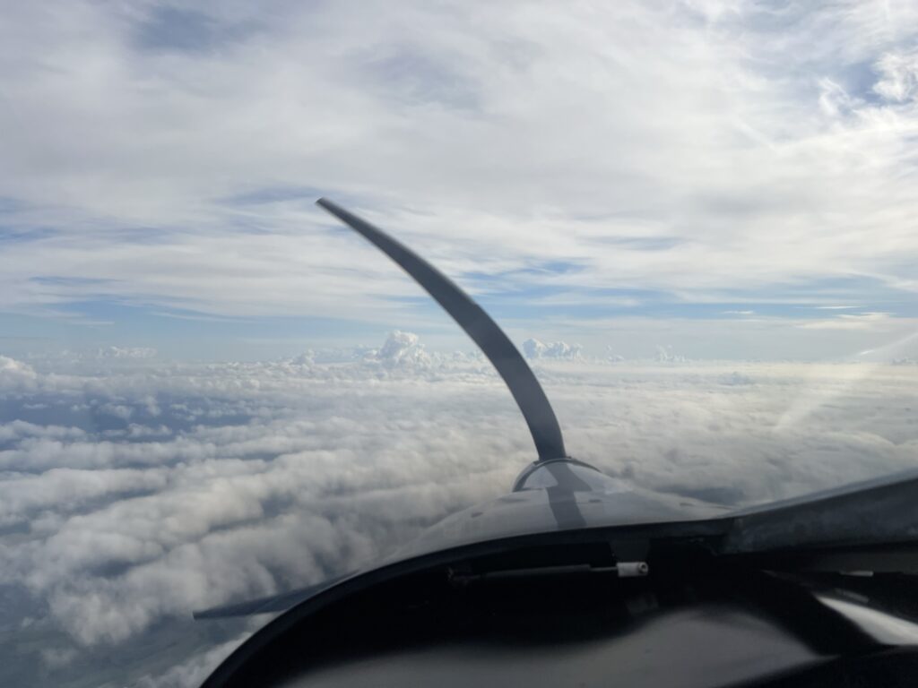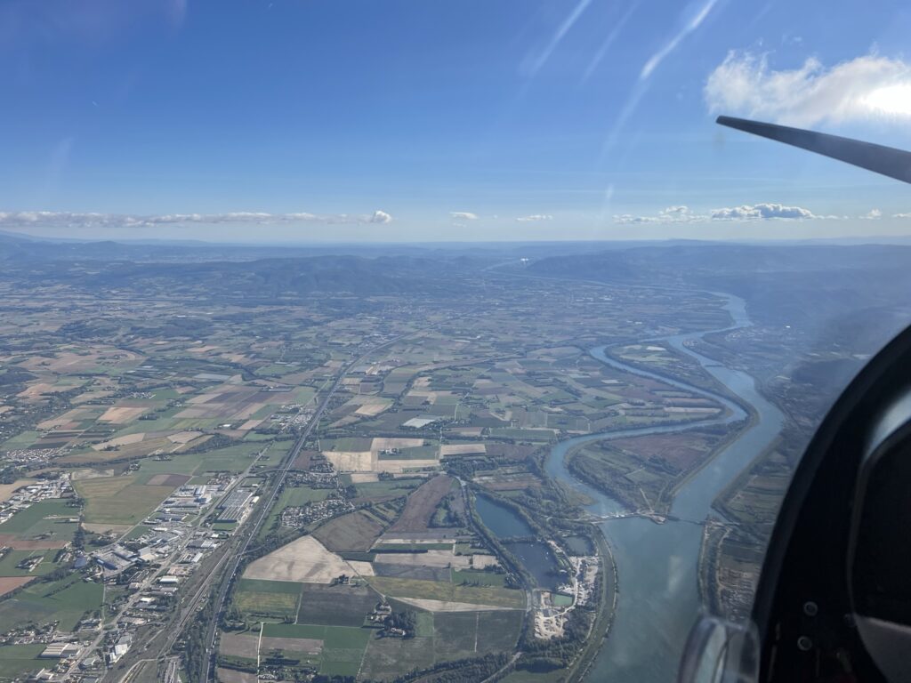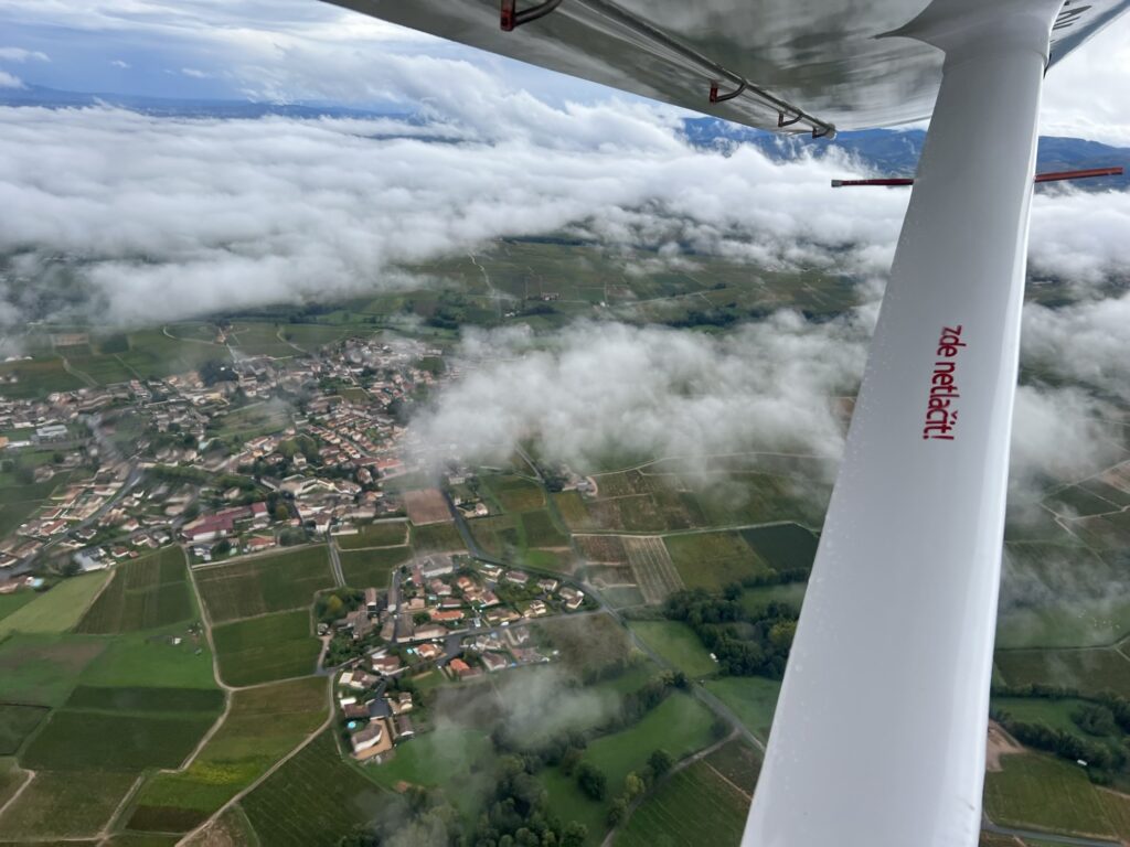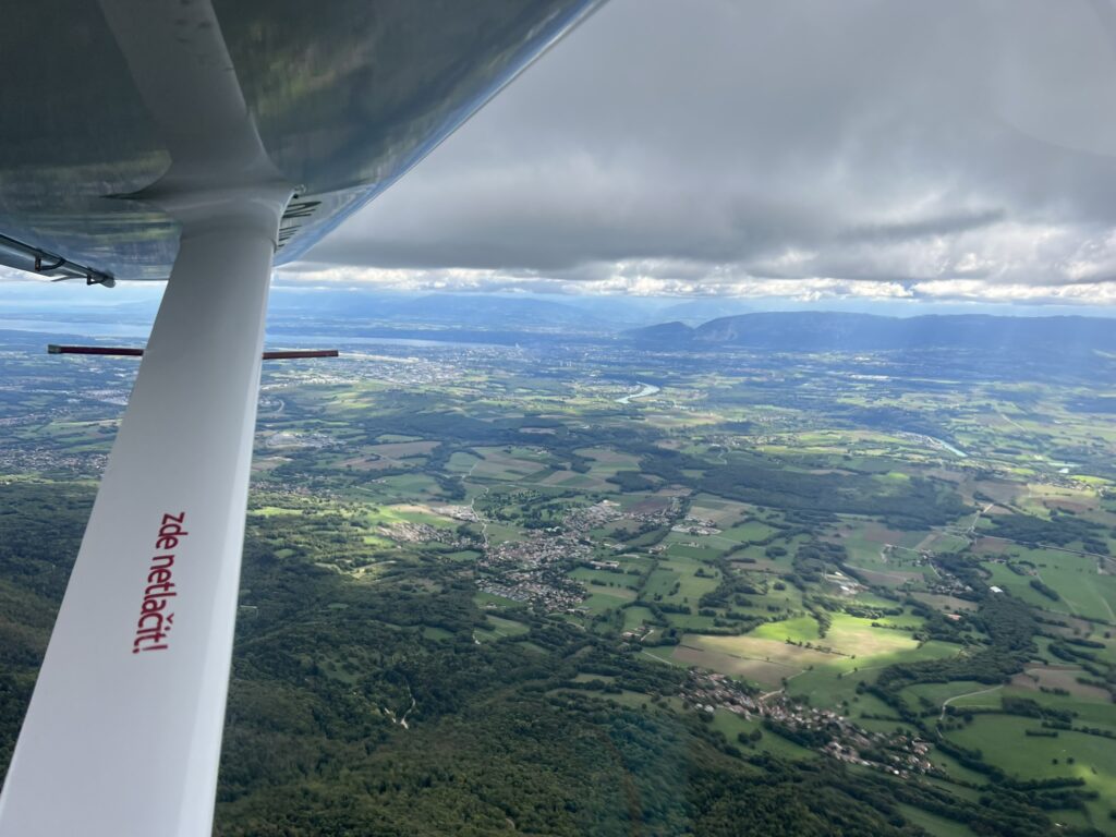Jedna z příjemných věcí na podzimním létání je ta, že si ráno můžete přispat a nemusíte mít výčitky, že už je dávno hezky a měli už jste být na cestě. Po rozpuštění ranní mlhy jsme naskočili do letadla plni očekávání. Předpověď vypadala, že bychom se mohli proletět přes francouzské Alpy. První hodina a půl nám ale dala zabrat – nízké mraky, pod kterými jsme se museli probojovat. Francouzi mají naštěstí velkou koncentraci letišť. Letěli jsme tedy tak, abychom vždy měli jedno z nich na dohled. Znalost terénu díky předchozí letecké návštěvě mi velmi pomohla, stejně jako terénní mapa ve SkyDemonu, a po hodině a půl maximální koncentrace jsme vylétli do sluníčka.