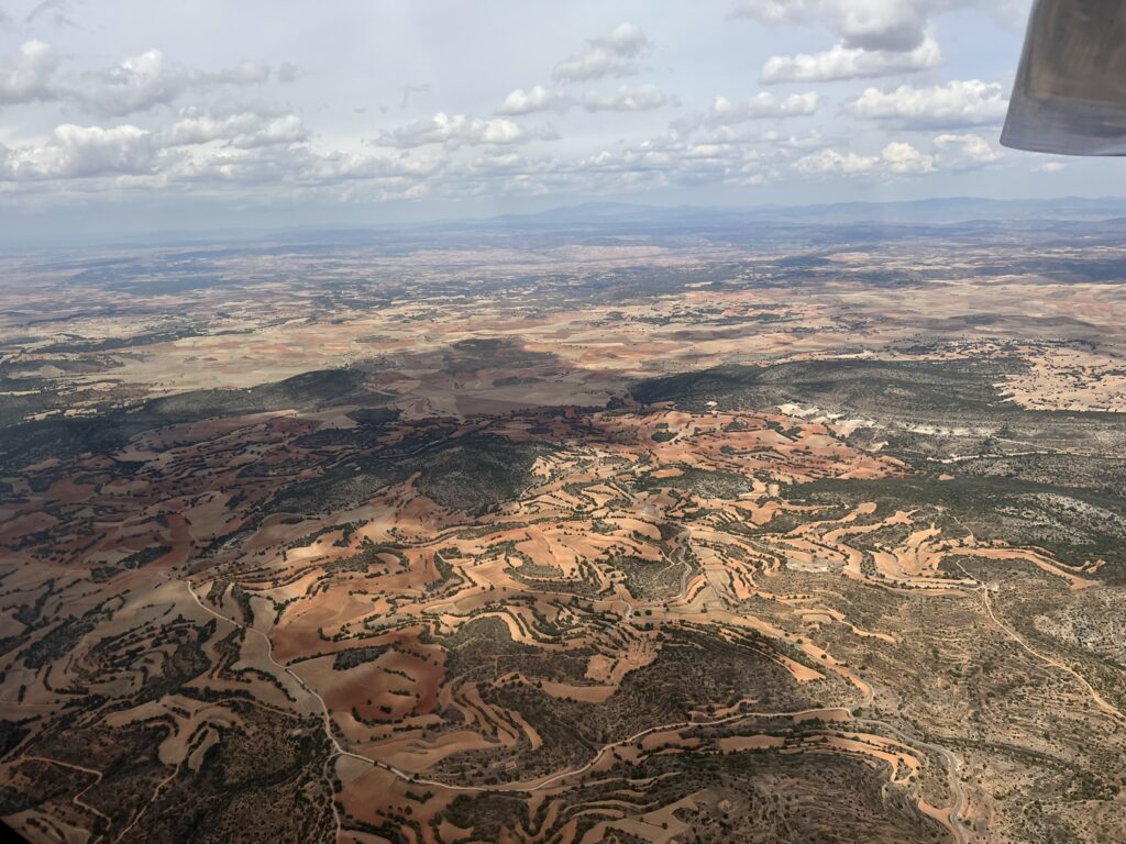Španělský terén dokáže být zrádný. Trasu jsem měl naplánovanou mimo řízené prostory (španělské omezení pro ultralighty, přinejmenším diskutabilní) a s ohledem na výškový profil terénu – tak, abychom nemuseli do příliš vysokých kopců, kdyby se třeba mraky rozhodly ležet nízko. Trasa vedla nad zemědělským terénem mimo lesy a velká města. Jednu věc jsem ale nedomyslel…