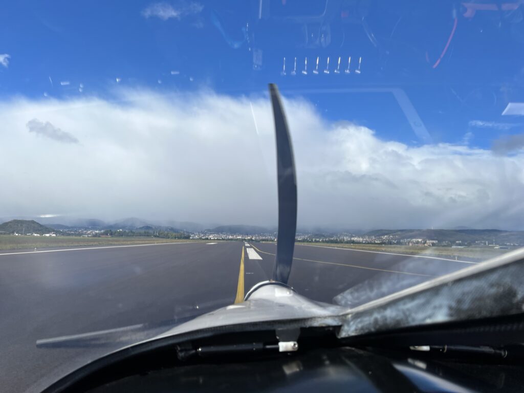Po kochačce kolem jezer nastal čas na další zážitek – horské letiště Mégeve. Je to prý jedno z těch nejjednodušších horských letišť. Nachází se ve výšce 4800 stop, má pevně definovanou proceduru na přiblížení a neexistuje moc možností pro go-around. My však štěstí neměli. Na přistání v Mégeve nám foukal vítr do zad, což naznačoval i mrak, který se nad horou vytvořil. V kombinaci s řídkým vzduchem a tedy vyšší pravou vzdušnou rychlostí by rychlost dosednutí byla relativně vysoká. Na domovském letišti bych si to možná ještě troufnul, tady ale zkoušení nemělo místo. Buď na jistotu, nebo vůbec.