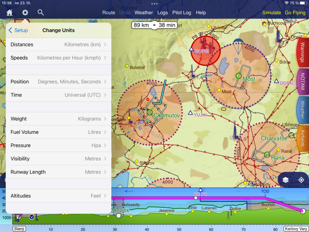 Varování na blížící se vzdušný prostor, blízkost terénu či překážky dokážou být užitečným pomocníkem, ale i nevítanou distrakcí. V Setup -> Navigation Options -> Airspace/Obstacle/Terrain Warnings tedy doporučuji předvolené limity upravit dle svých preferencí. Při krátkém VFR letu 300 metrů nad zemí v blízkosti TMA by totiž každých pár vteřin vyskakovalo nějaké varování, což dokáže být dost otravné.