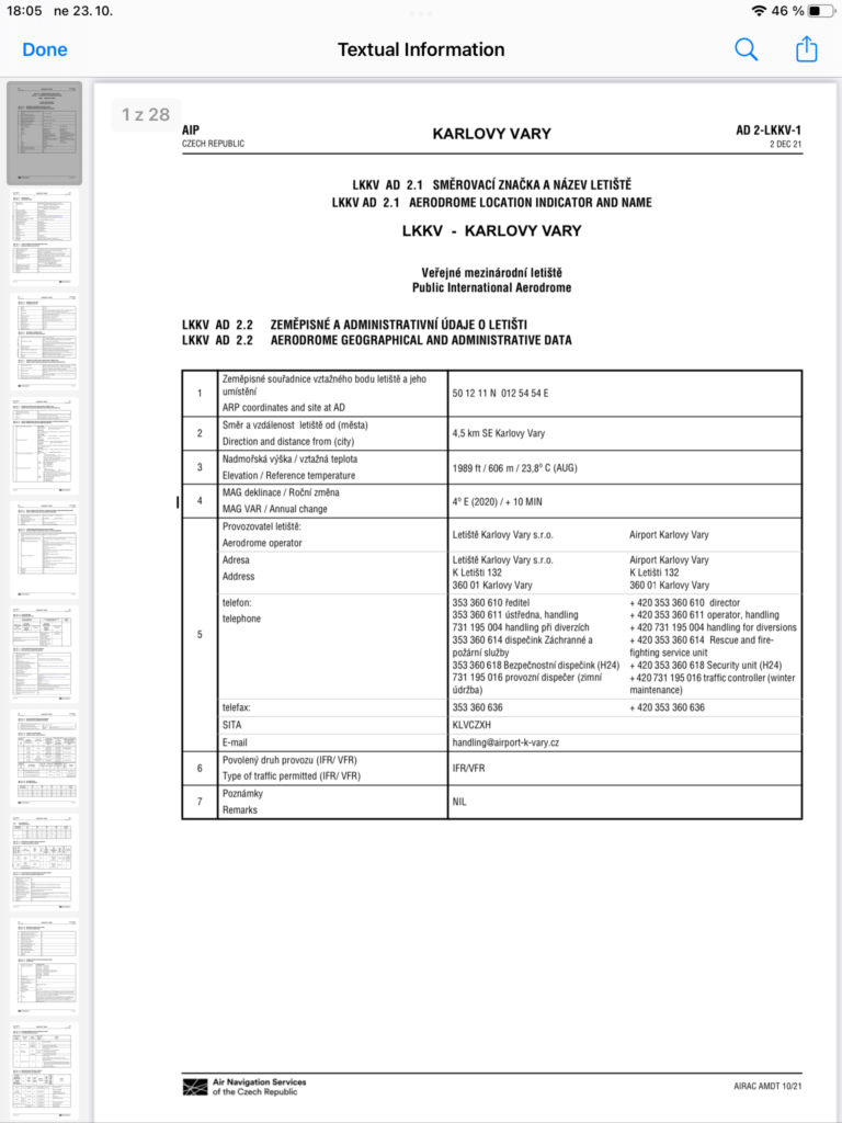 Níže lze nalézd odkazy na oficiální údaje z AIPu dané země a to jak textové informace, tak plánky letiště, plánky přiblížení a odletů a další. Kliknutím na tlačítko Download úplně vpravo nahoře si všechny tyto dokumenty můžeme stáhnout pro off-line použití.